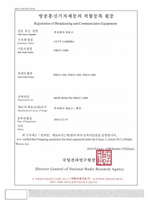 방송통신기자재등의 적합등록 필증: CCTV 카메라