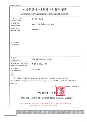 방송통신기자재등의 적합등록 필증: VPN 기능을 탑재한 POE 스위치