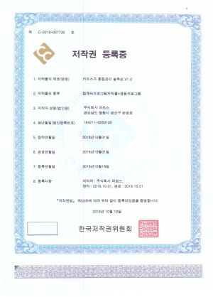 저작권 등록증: 키오스크 통합관리 솔루션 v1.0