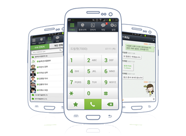 외부에서 업무를 보더라도 공무원 간 무료 내선통화가 가능하여 기관 및 공무원 개인의 실질적인 통신비가 절감되고, 조직도 기반의 실시간 공지사항 전달, 공무원 상태정보 확인 등의 기능을 제공하여 업무효율 향상에도 도움을 줍니다.
